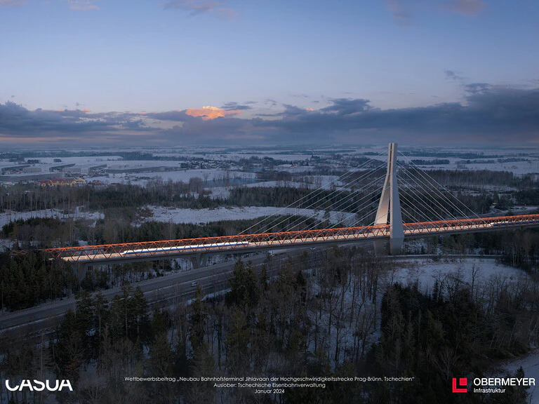OBERMEYER Infrastructure, in particular the Institute for Transport Planning and Traffic Engineering, provided technical advice to the Czech colleagues and supported them with the design planning. The core of the competition was the terminal of the high-speed railway line (VRT) Prague-Brno with traffic development and new bridge construction.